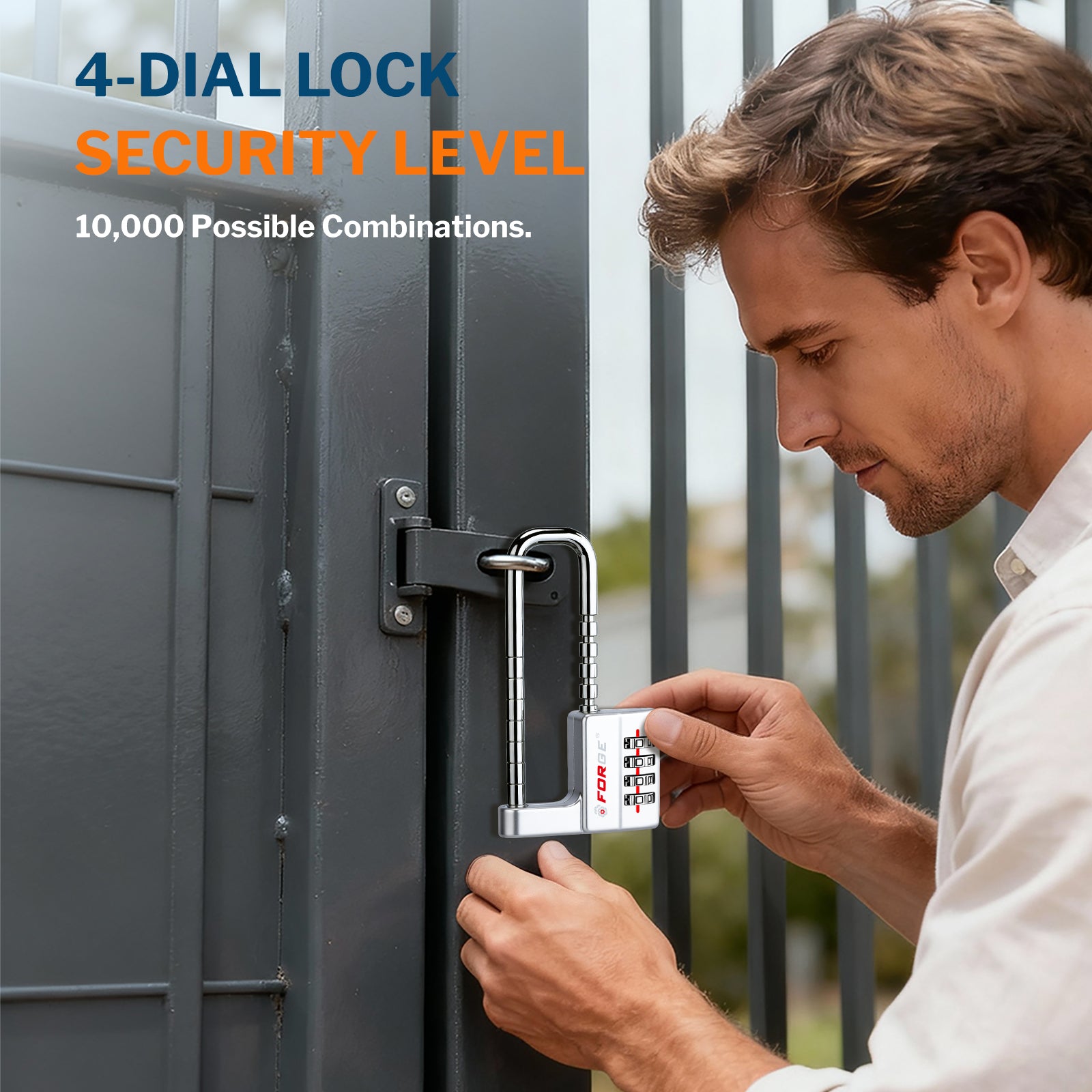 The lock uses a 4-dial combination system with 10,000 possible combinations.
