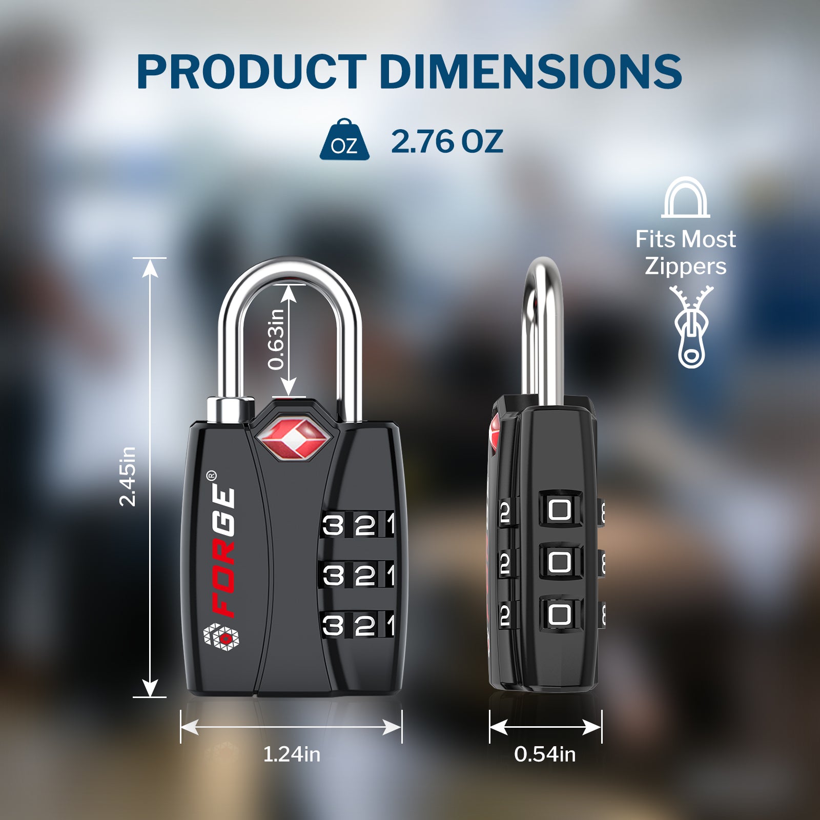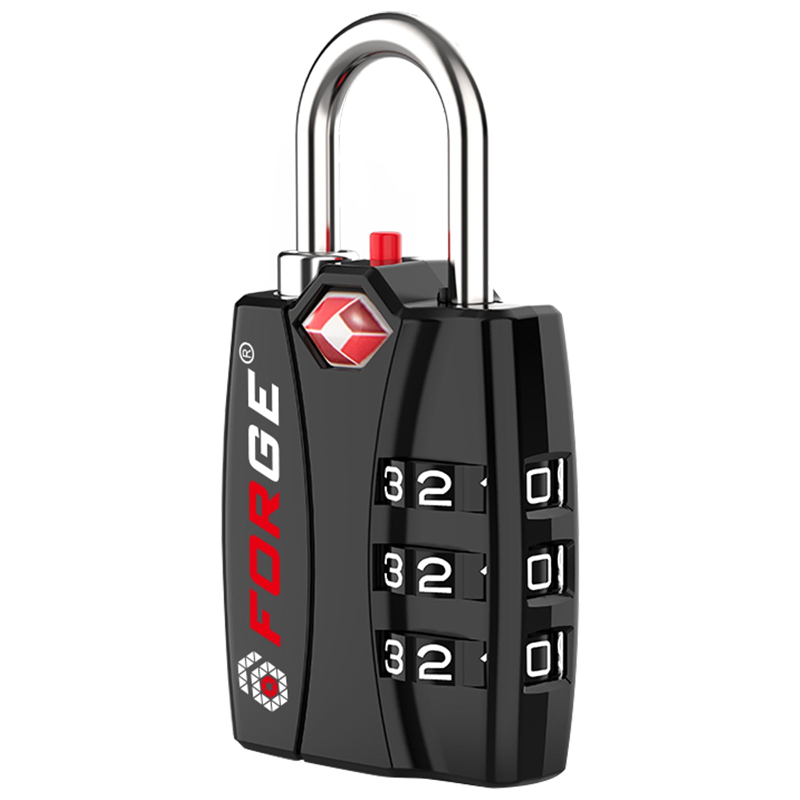 Candados para equipaje Forge aprobados por la TSA: combinación de 3 dígitos, indicador de apertura, negro, 1 unidad.
