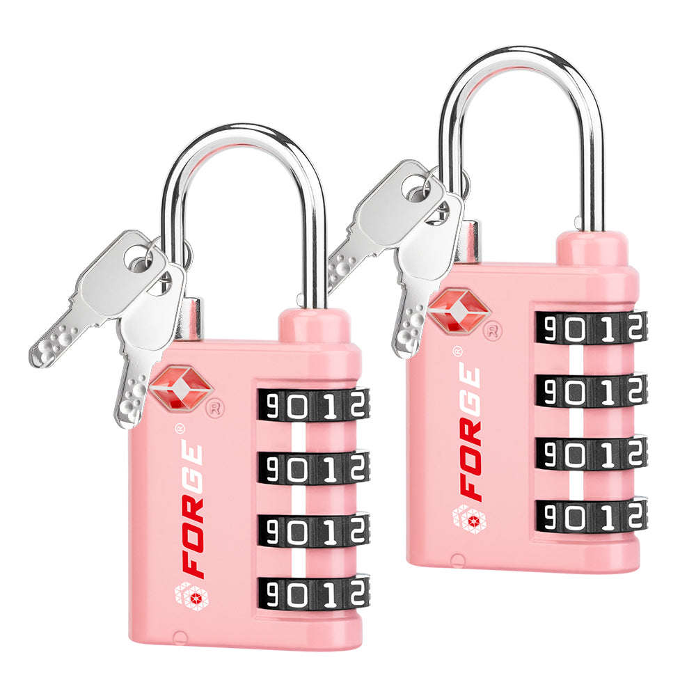 Dual-Opening TSA Approved Luggage Lock: Key or Combination Access, Heavy Duty. 2 Pink Locks