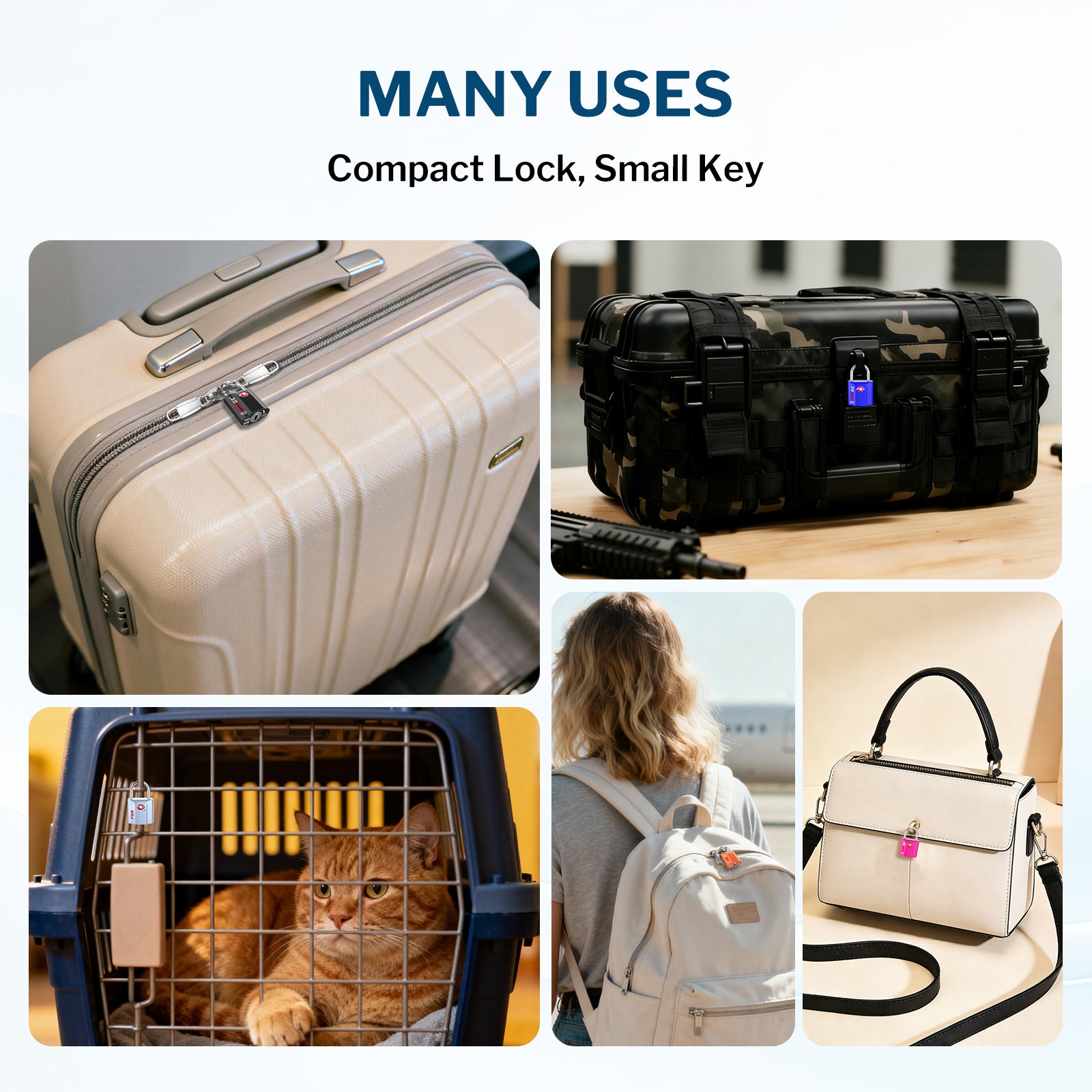 MUCHOS USOS CON MUCHA VARIEDAD. Los candados de viaje Forge se pueden utilizar en una amplia variedad de artículos además de maletas o equipaje. Estos candados de combinación se pueden usar en un maletín, casillero de gimnasio, bolso, mochila o bolso para computadora portátil.